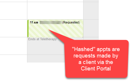 On the calendar view, the “hashed” appointments are coming via the Client Portal.