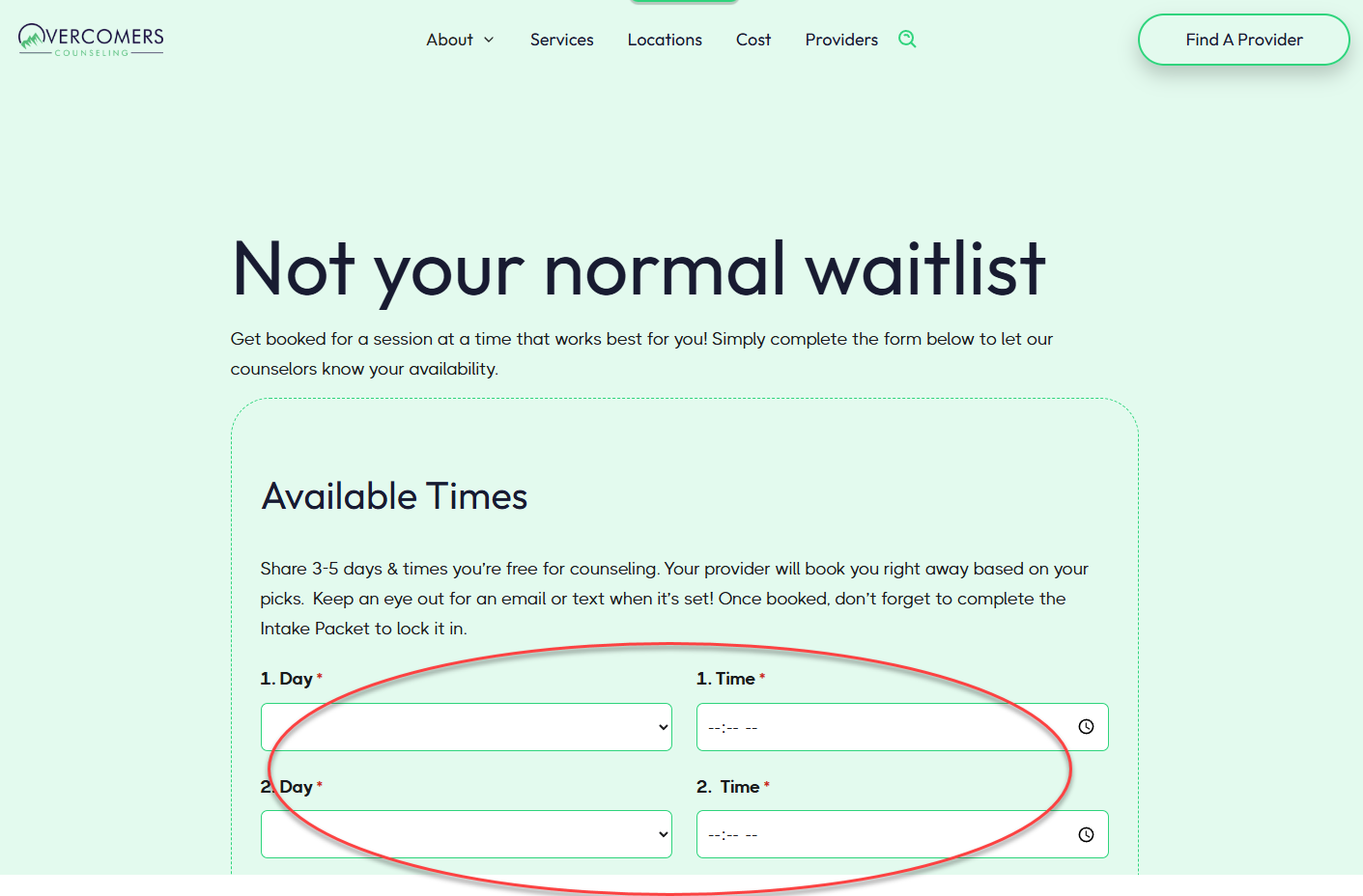 When a user cannot find an available provider in the Directory, they can submit a request to join the waitlist.
