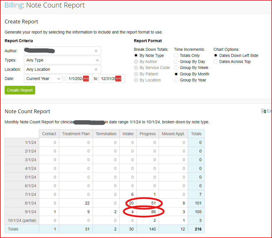 32 intakes/sessions per month is the minimum for W2 Counselors. Visit TN >> Staff >> Your Name >> Billing >> Note Count Report to view your Intake/Session note count.