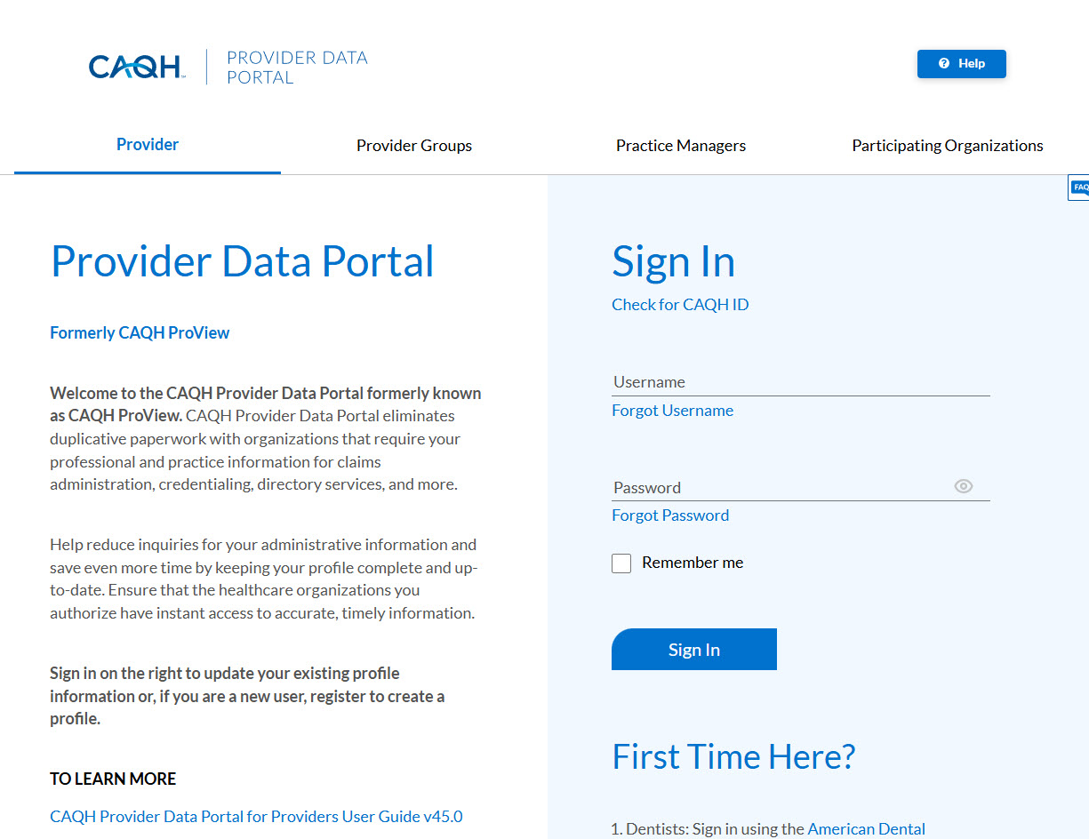 CAQH ProView is the healthcare industry’s premier resource for self-reporting professional and practice information to health plans and other healthcare organizations. It is an extensive provider profile from which insurance payers can pull information. To create a profile, click here. The entire CAQH profile is extensive. Please fill out as much information as possible. If you don't know information about our 'practice' you can leave it blank.