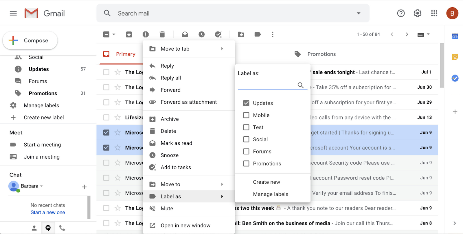 Once you have created your labels, you can assign them to specific emails by clicking on the checkbox next to the email and selecting the desired label from the "Labels" drop-down menu. You can also assign multiple labels to one email if necessary.