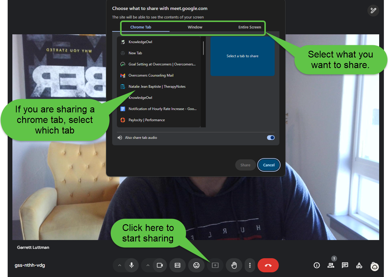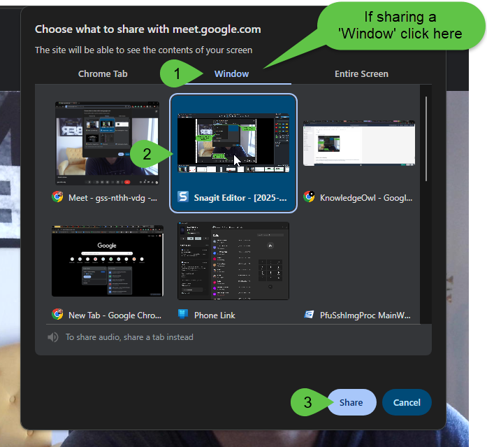 If you want to share your Entire Screen, click Entire Screen.