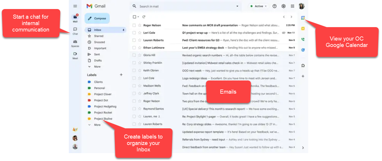 OC's Gmail is a HIPAA-compliant inbox that offers our team a secure and private communication platform. It is designed to meet the strict Health Insurance Portability and Accountability Act (HIPAA) regulations, ensuring the confidentiality, integrity, and availability of protected health information (PHI). Our Inbox is HIPAA compliant; however, the client’s inbox is not. TN Messaging is the most secure/HIPAA-compliant way to message the client about treatment. Learn more: How to use TN Messaging.