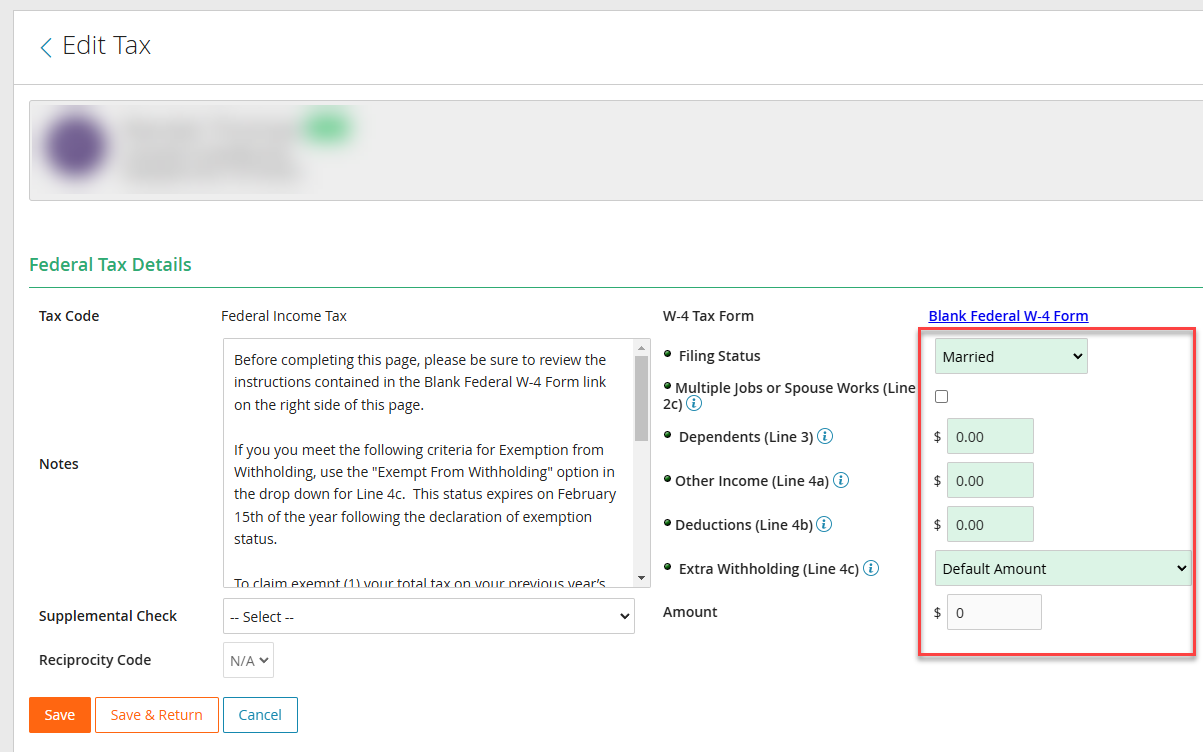 - Update the tax withholdings as desired.