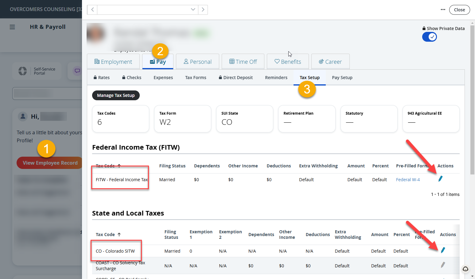- Click the Edit (Pencil icon) to edit the Federal and State withholdings.