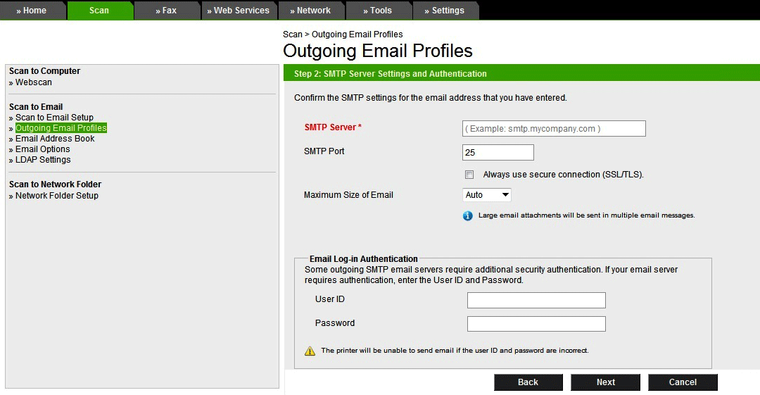 Follow these steps to get the scan-to-email to work.