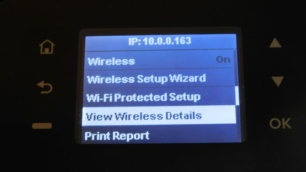 Go to the printer and click on the “Wifi” to get the IP Address. In this screenshot, the IP address is https://10.0.0.163. Yours may be completely different.