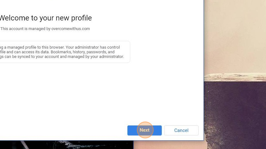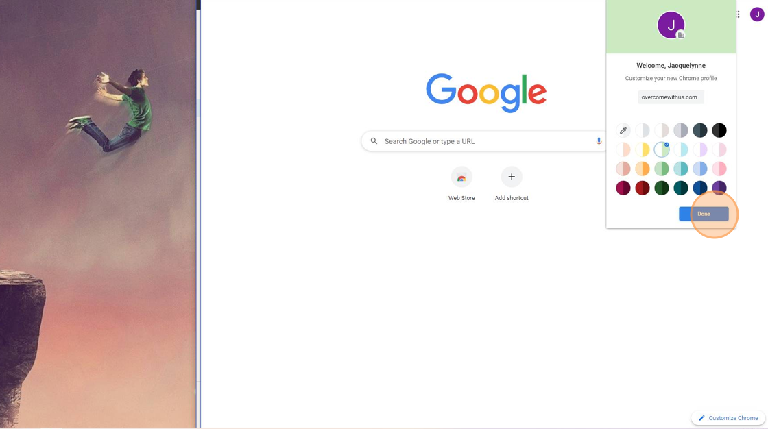 Your new Overcomers Chrome account is created! Click "Done"