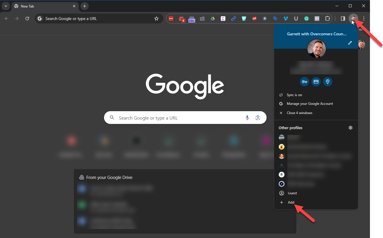 Creating an Overcomers' Chrome Profile will keep your personal and business Chrome bookmarks separate and allow you to access our documents without a 'denied access' notice.