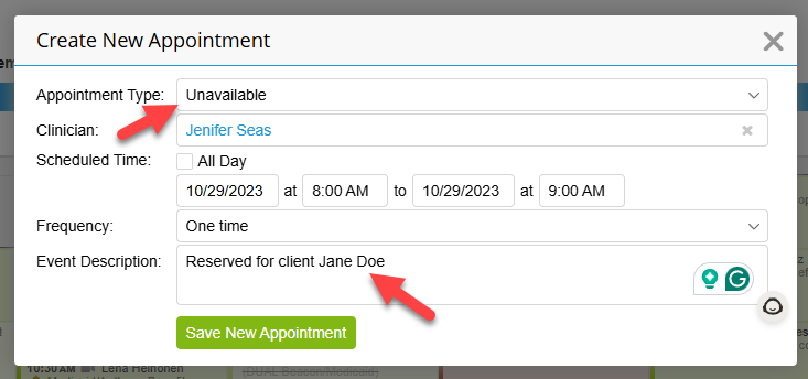 A client is following you from another practice, so you want to schedule them on your calendar.