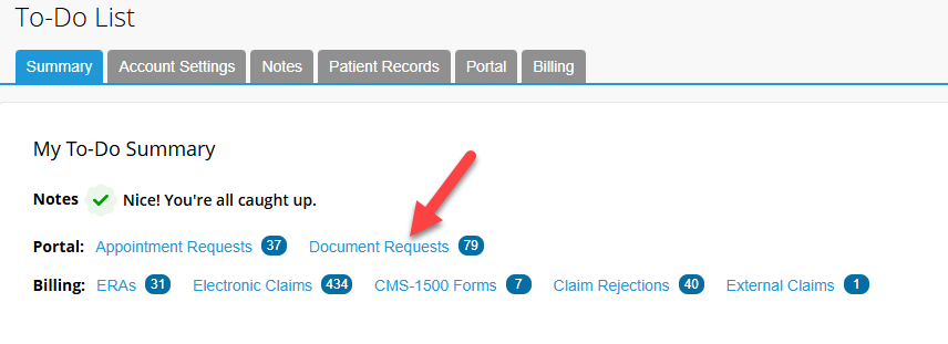 Go to TN >> To-Do >> Document Requests >> Waiting on Patient