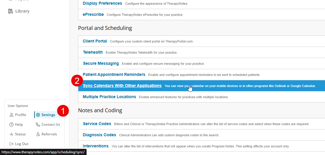 To sync YOUR TherapyNotes calendar with a device/program (i.e. Google Calendar):